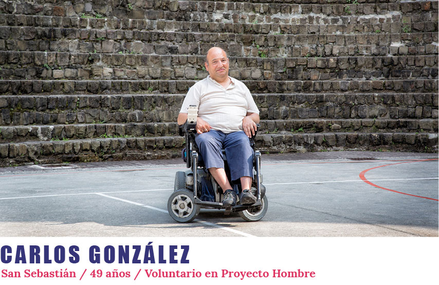 Tengo una parálisis cerebral de nacimiento y tengo muchas dificultades para trabajar, así que tengo mucho tiempo libre. Por eso, intento hacer voluntariado siempre que tengo ocasión, además de con Proyecto Hombre, también colaboro con Elkartu, Kemen y otras asociaciones.