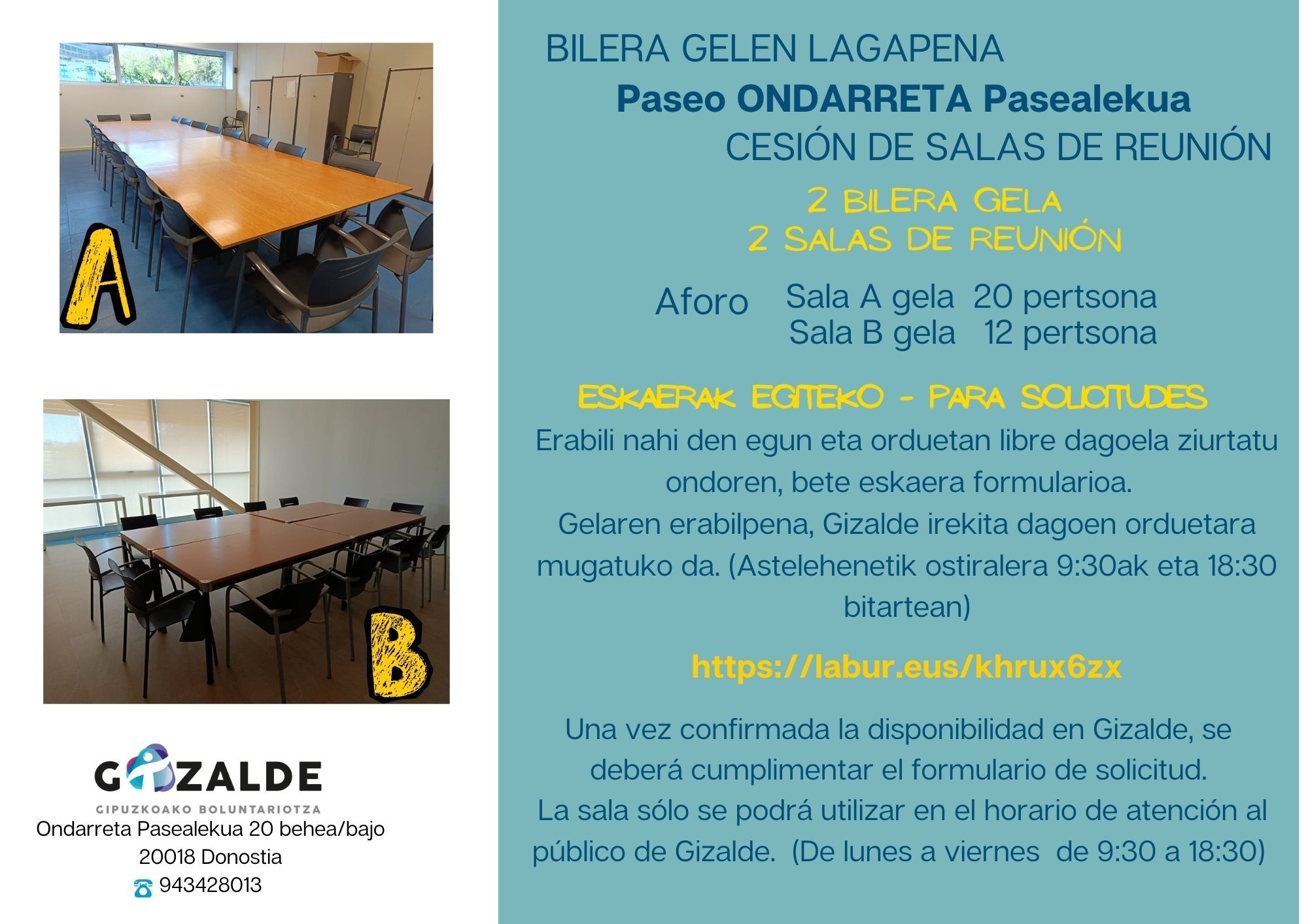 Gizalde dispone de varios espacios habilitados para las entidades: