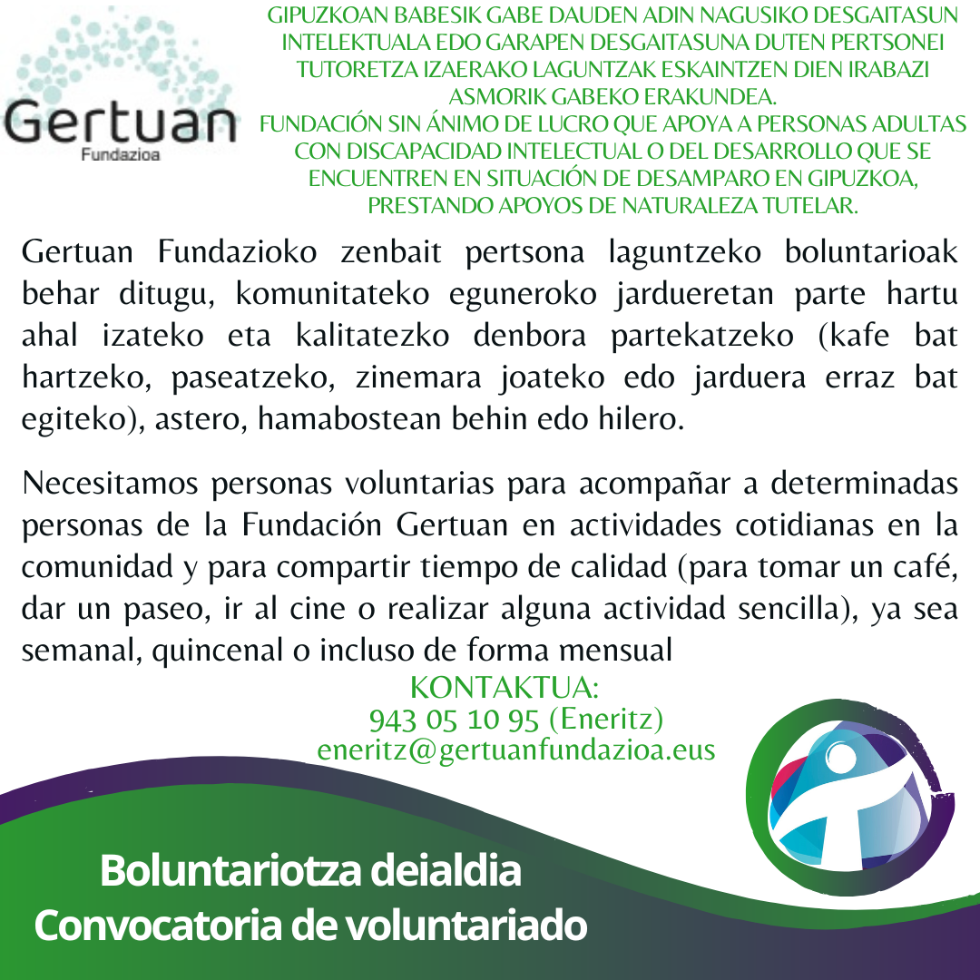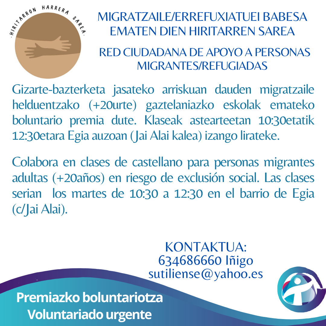 En este apartado recogemos las necesidades de voluntariado urgente o puntual. Si encuentras algo que te interese, ponte en contacto con las personas responsables de voluntariado.