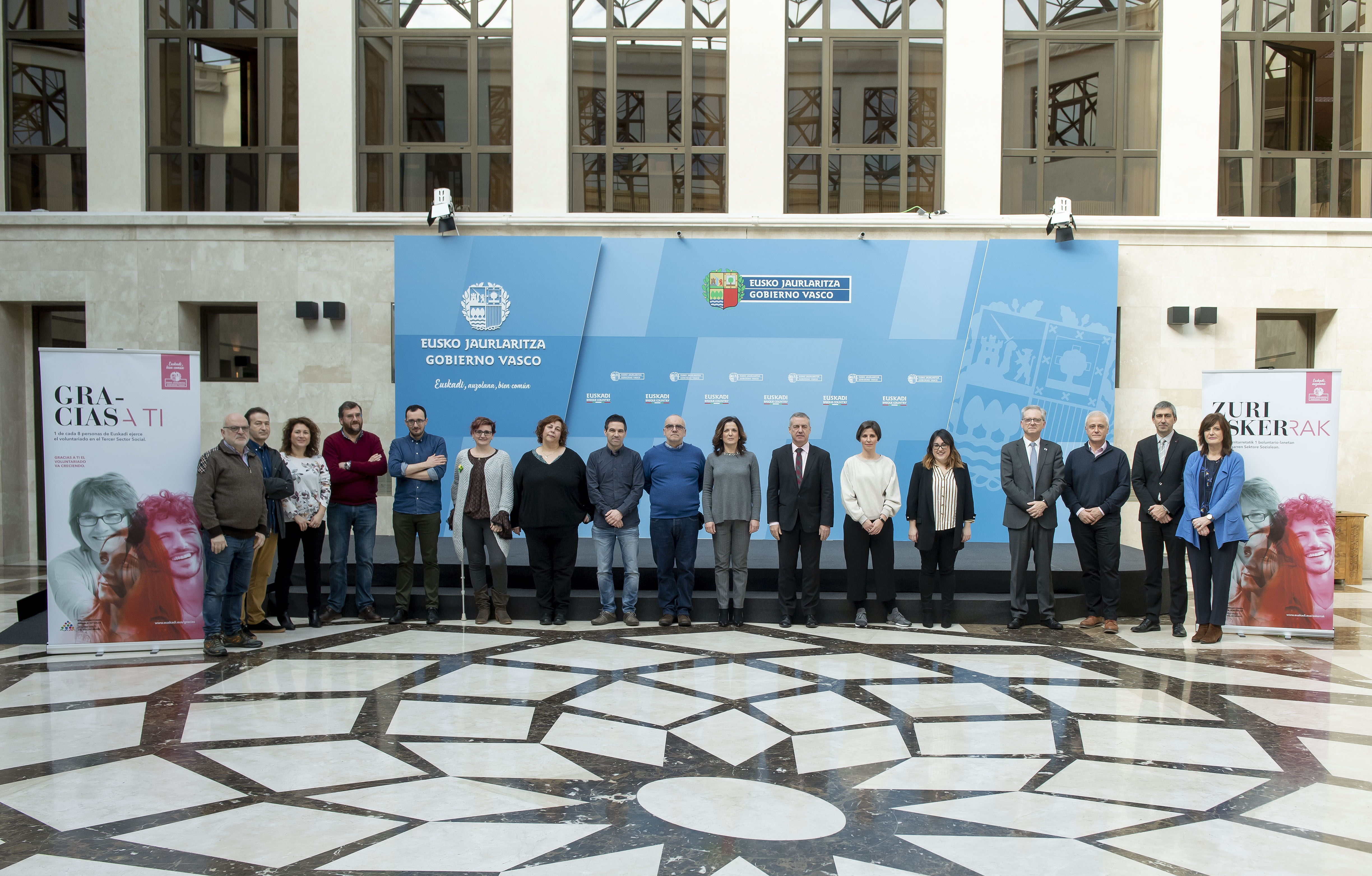 Iñigo Urkullu Lehendakariak, Beatriz Artolazabal Eusko Jaurlaritzako Enpleguko eta Gizarte Politiketako sailburuarekin eta Boluntariotzaren Euskal Kontseiluko presidentearekin batera, boluntariotzaren hiru euskal agentzien ordezkaritza bati egin dio harrera, gaur, Lehendakaritzan. Batekin (Araba), Bolunta(Bizkaia) eta Gizalde (Gipuzkoa) dira agentziak, eta honako hau esan du horien inguruan: “Euskadiko funtsezko elementu dira, ekintza boluntarioa sustatzeko eta elkartze-egitura sendotzeko””. (Iturria: Irekia – Eusko Jaurlaritza)